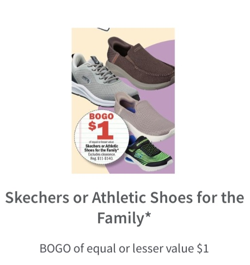 Buy any TWO pairs of athletic shoes, including Sketchers, Shaq, Reebok, MTA + More, regularly priced $11-$140