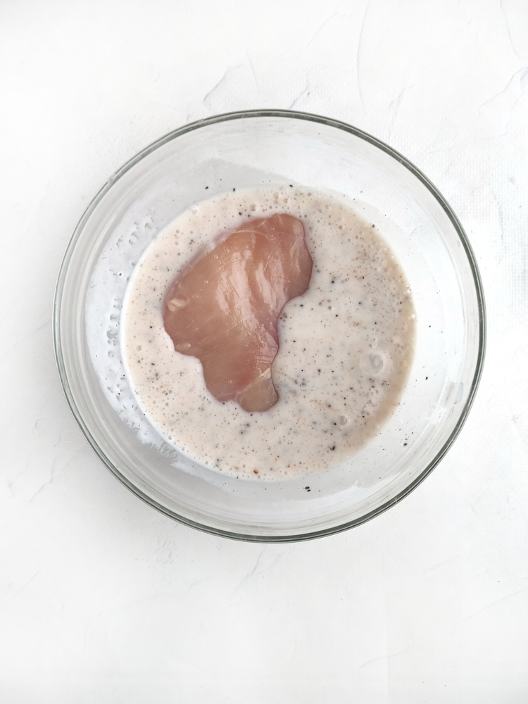 3. Mix buttermilk with salt and pepper. Place the chicken in the resulting marinade and leave for 4-6 hours in the refrigerator.