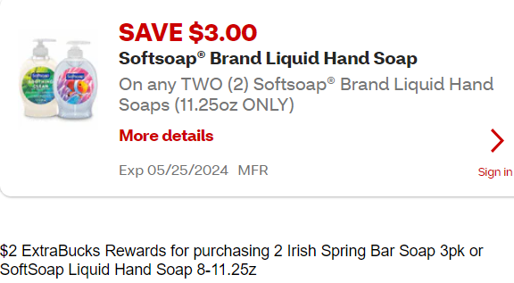 Use 1 SAVE $3.00 On any TWO (2) Softsoap® Brand Liquid Hand Soaps (11.25oz ONLY) CVS ECOUPON