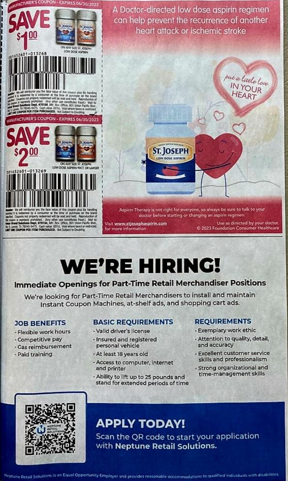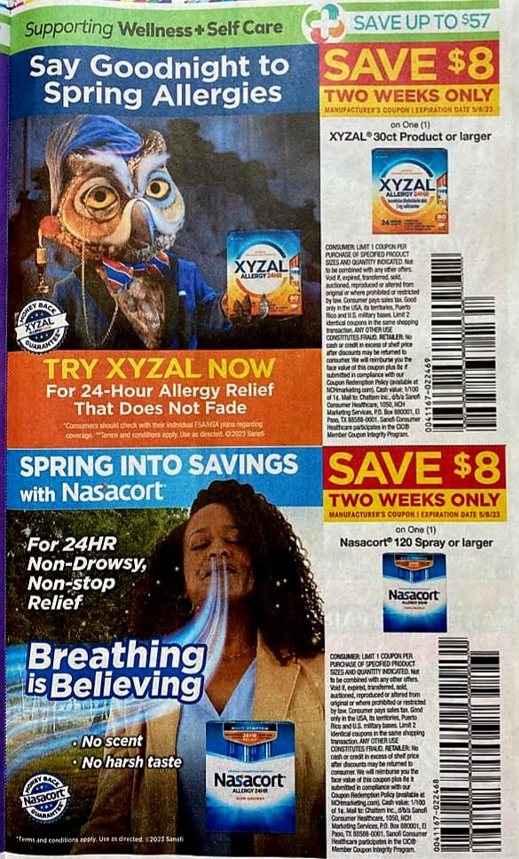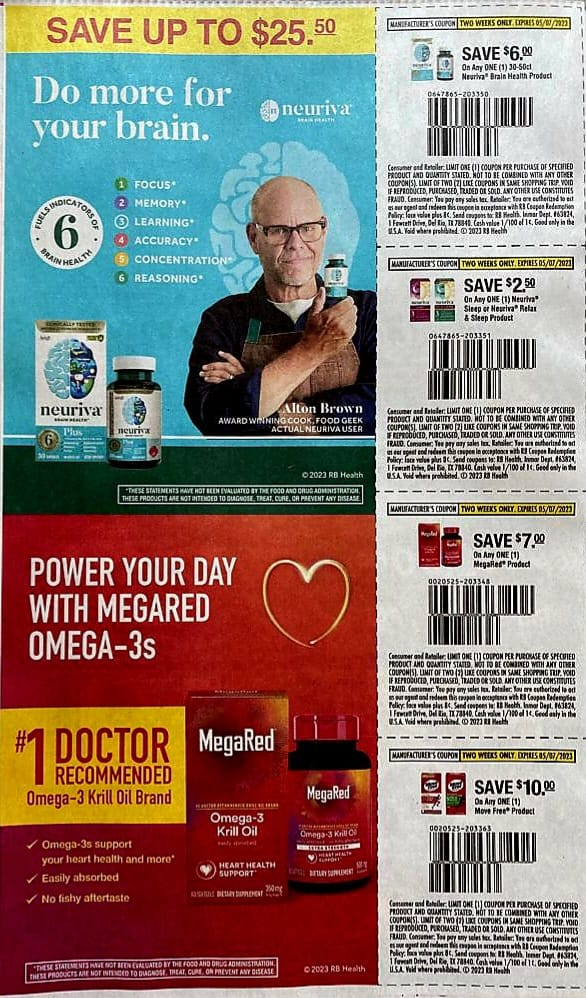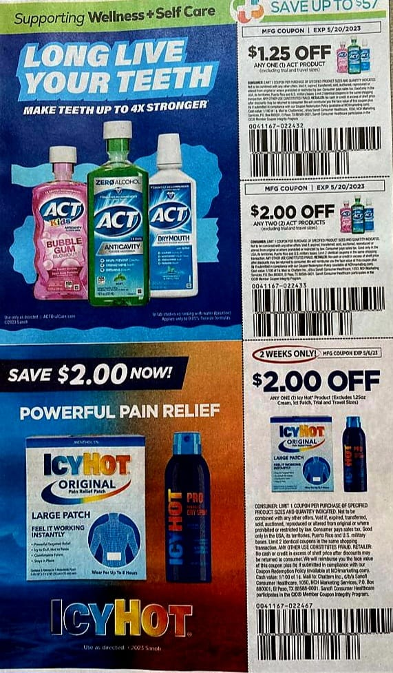 On 04/23/2023, you can expect two inserts in your Sunday papers. Remember that this list is a preview of what could be, each region can get differing coupons and different values. If you are looking for information on ordering coupons please contact Kristi Phillips our coupon supplier here by sending her a private message.