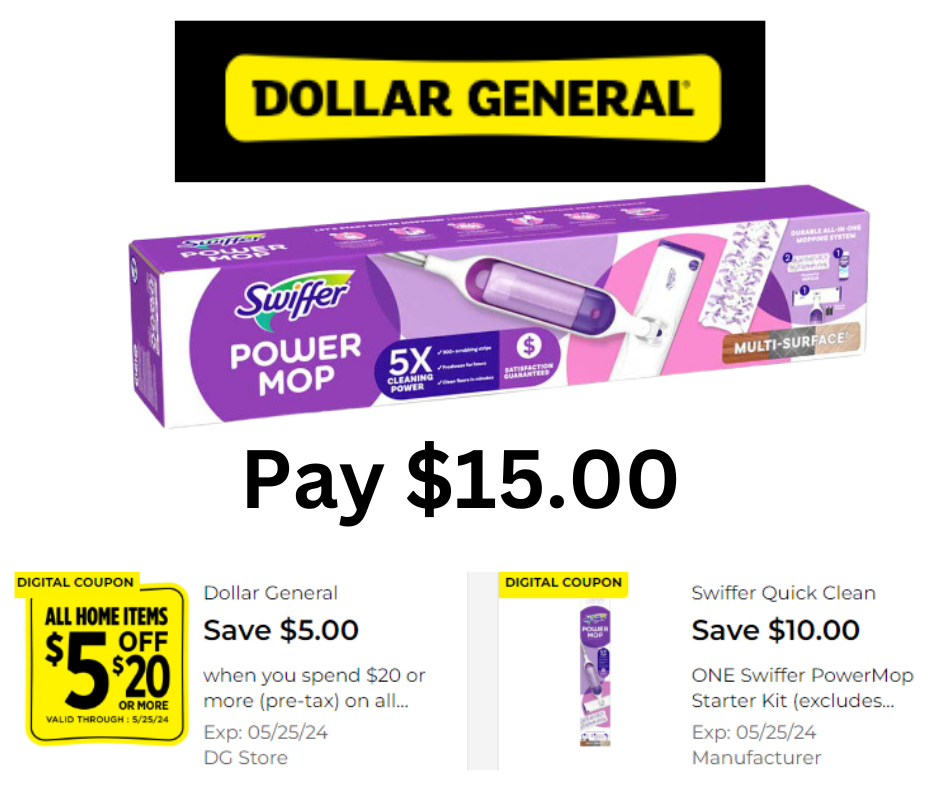 Attention all savvy shoppers! This week at Dollar General, we have an incredible deal that you won't want to miss. The Swiffer Multi-Surface Powermop, originally priced at $30.00, can be yours for just $15.00 when you use a $5.00 off digital store coupon and a $10.00 off Swiffer Manufacturer coupon. That's right – this is a steal that you won't find anywhere else! Read on to learn more about how you can snag this amazing offer before it's gone.