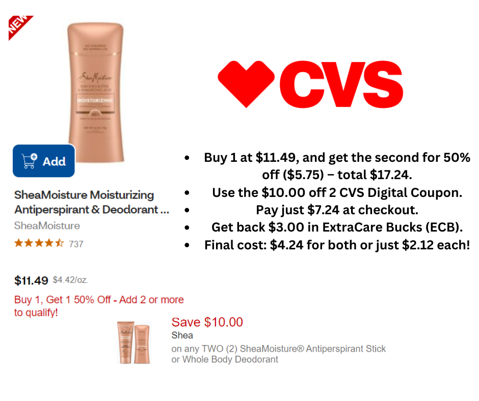 CVS Deal: SheaMoisture Antiperspirant & Deodorant Stick – BOGO 50% + ExtraCare Bucks!