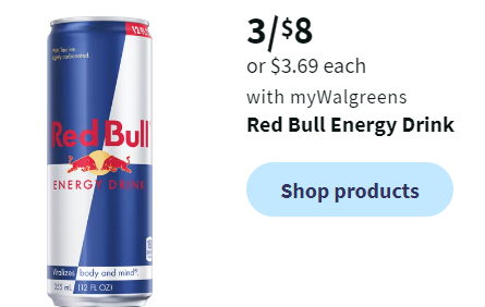 Get ready to fuel your days with the electrifying Red Bull Energy Drink, now available at an incredible price of just $2.66 per can. Yes, you heard it right; we're offering a mind-blowing offer of 3 cans for only $8.00 exclusively for myWalgreens rewards members. No coupons required – simply provide your telephone number at checkout and prepare to embrace this exhilarating sale from February 4th to February 10th. Don't miss out on this phenomenal opportunity to power up your life without breaking the bank.