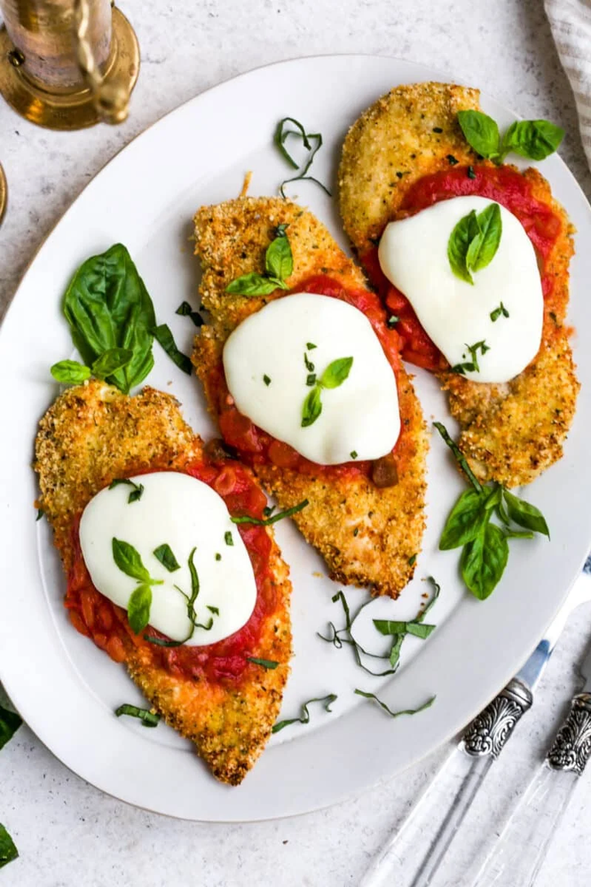 This chicken parm is healthier, yet just as tasty. Make this for an easy family meal that everyone will want seconds of. Serve this with a salad and bread for a feast.