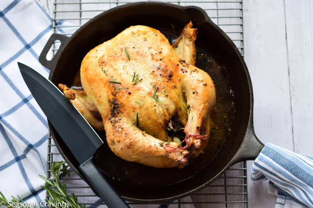 A roasted chicken with aromatic rosemary is just the thing to make to draw your loved ones to the table for a classic sit down dinner. Serve with potatoes and a veggie for a filling, fuss free meal.