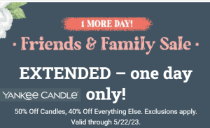 Right now at Yankee Candle you can score ALL CANDLES for 50% off and 40% off everything else. Wax melts