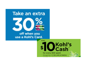 Take up to 30% PLUS KOHL’s Cash Take up to 30% with your Kohl’s Card. 8/4-8/13 See Kohl’s Wallet for details. KOHL’S CASH Earn $10 for Every Read More » August 4, 2023 No Comments