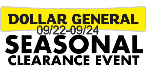 Dollar General Seasonal Clearance EVENT 09/22-09/24 We have another Dollar General Seasonal Clearance EVENT for 09/22-09/24. THIS IS NOT A