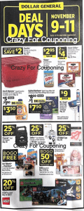 Dollar General Ad Scan Deal Days 11/09-11/11 Want to see great deals including Dollar General Matchups, Penny Lists, How to