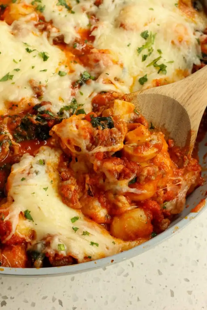 This baked gnocchi is just so cheesy! This is perfect for a dinner at home for two.