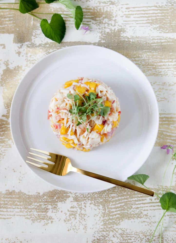 Looking to keep dinner a little lighter? Then serve this crab and mango salad with fresh fruits for a perfect meal.