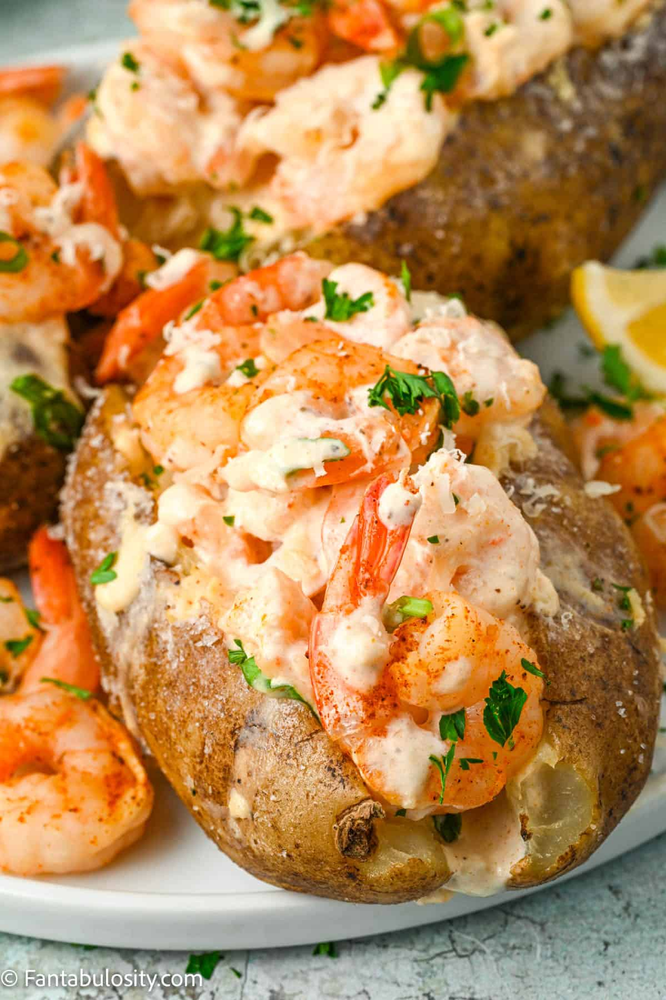 Make a meal of a baked potato with this shrimp stuffed recipe. This is just so good that you are sure to love them!