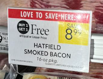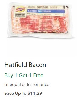 Deal; Hatfield Bacon Buy 1 Get 1 FREE Free item of equal or lesser price.