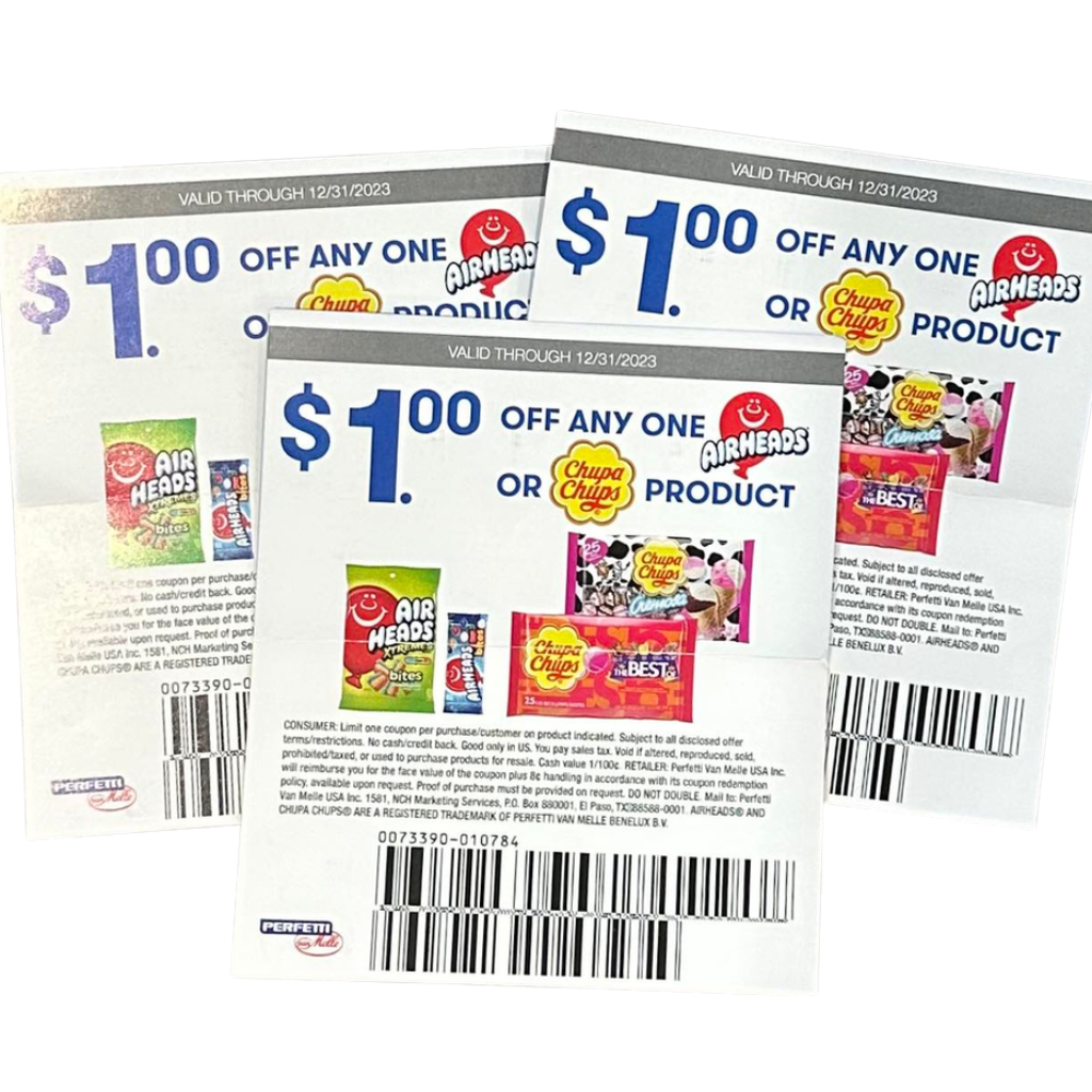 - Airheads / Chupa Chups (Perfetti Van Melle USA) – They respond with $1 off coupons for any variety of Airheads or Chupa Chups products.