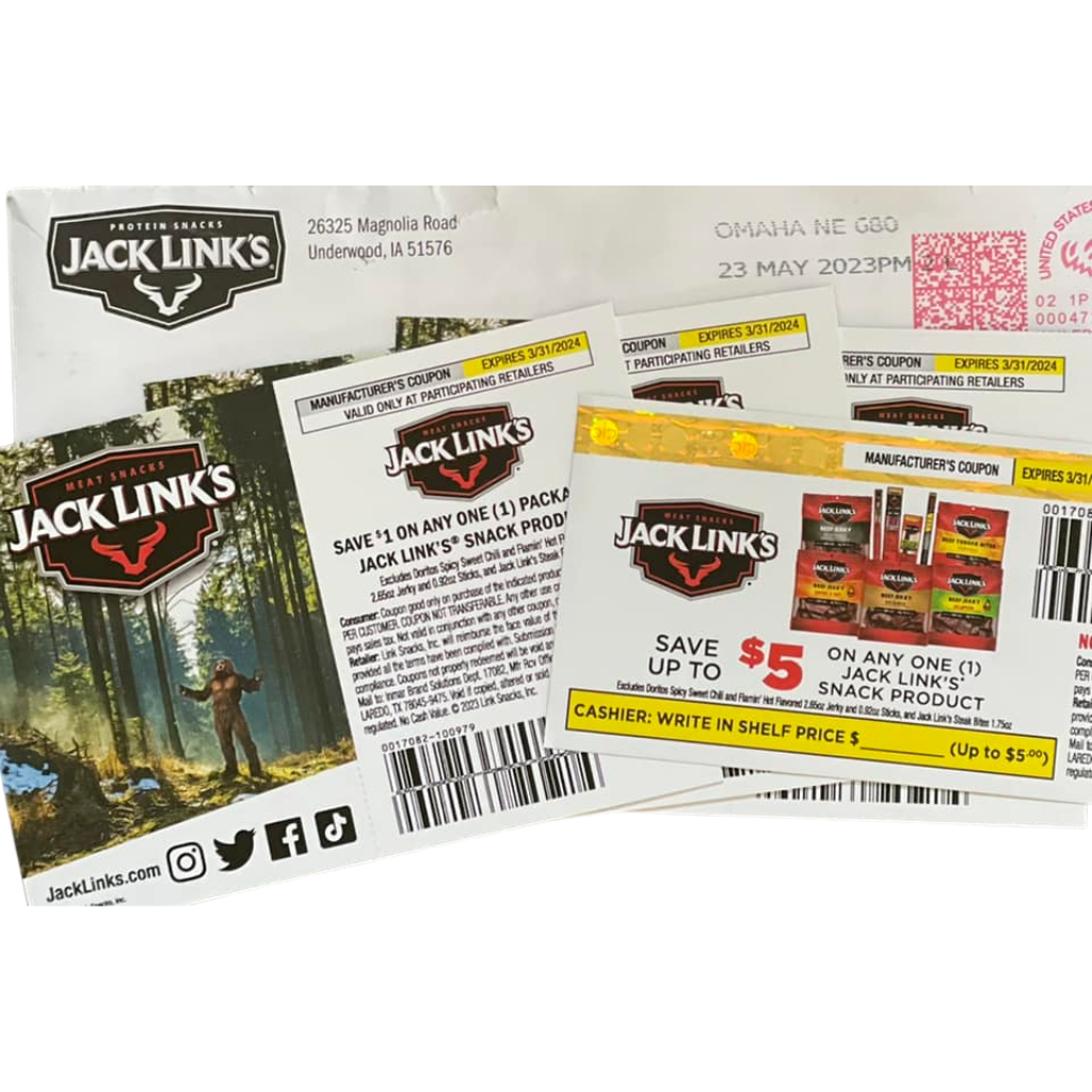 - Jack Link’s – They often send high-value coupons ($1–$5) for their beef jerky and snack sticks when you reach out through their contact page.