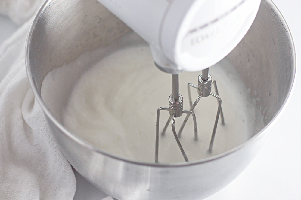 Add the powdered sugar and mix on low speed until soft peaks form.