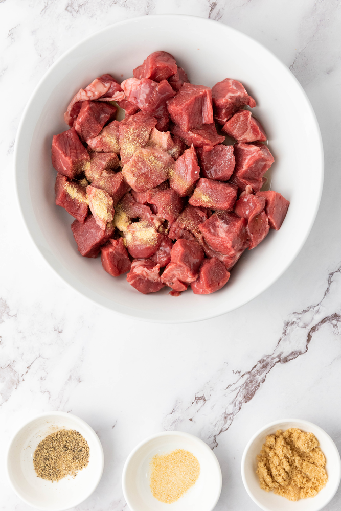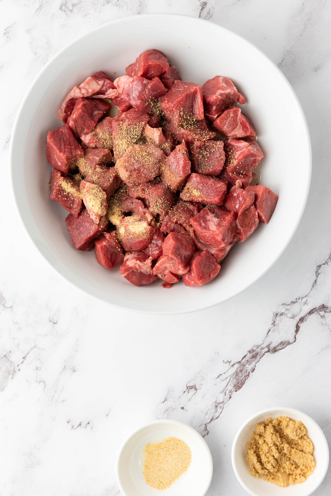 ·       Toss the steak pieces in the marinade, ensuring they are evenly coated. Let them sit in the marinade for about 15-20 minutes to absorb the flavors.