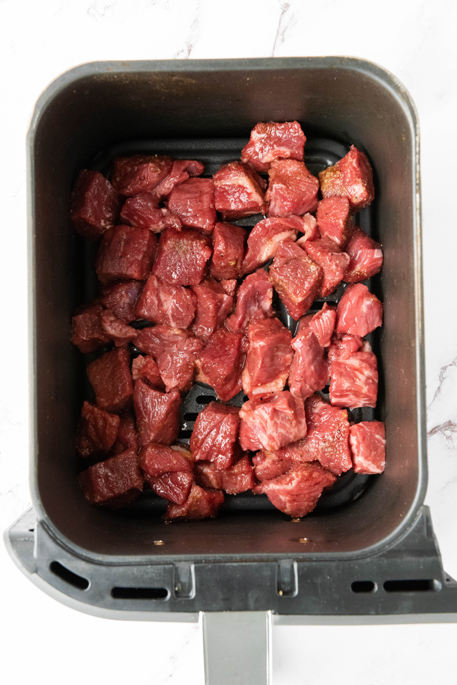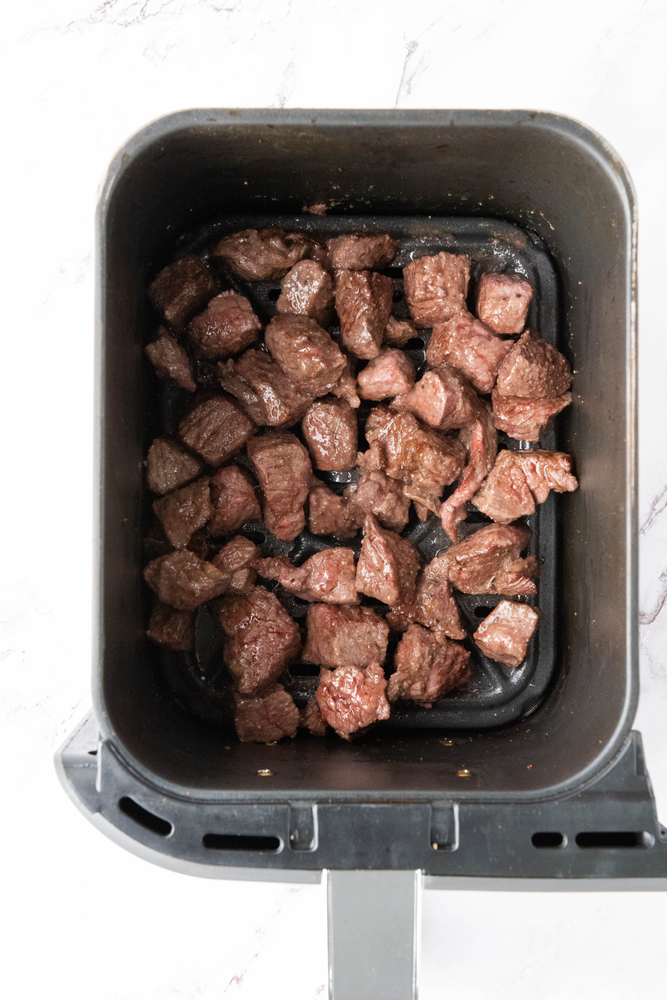 ·       Once the air fryer is preheated, arrange the marinated steak pieces in a single layer in the air fryer basket. Be careful not to overcrowd to ensure proper circulation of air.