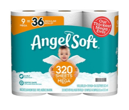 Pay – ONLY $5.99 for ONE 9 mega roll package of Angel Soft Toilet Paper!