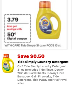 Tide Simply Laundry Detergent 31 oz. or Simply Pods 13 ct. $3.49