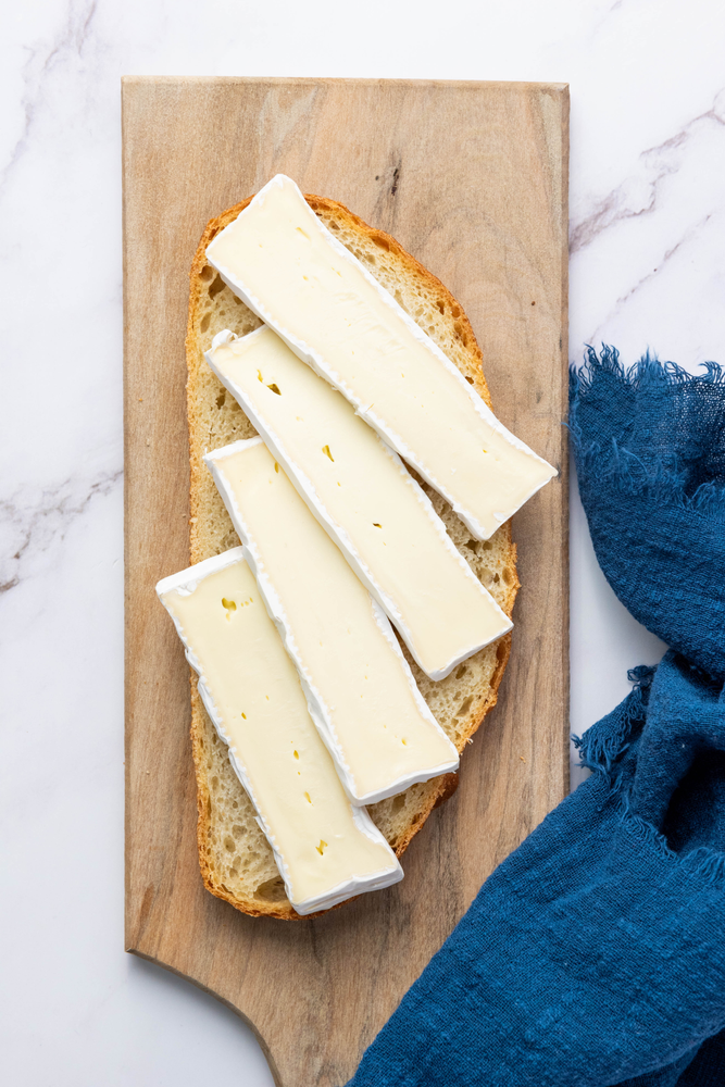 · Take 2 slices of bread divide the slices of Brie cheese on one side of each slice.