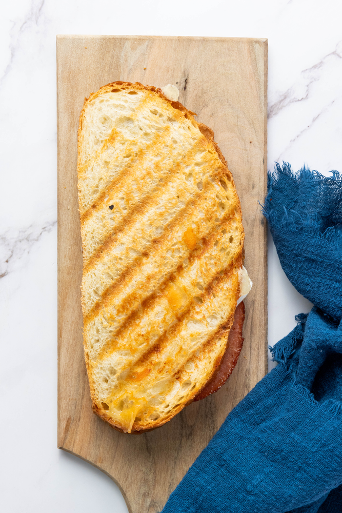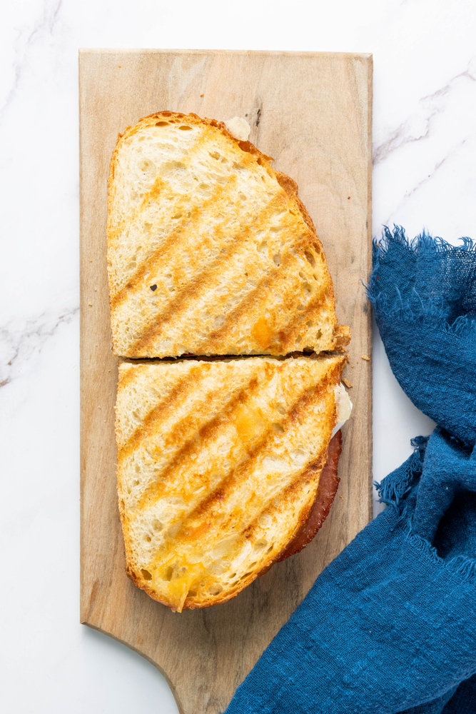 · Place the sandwiches on the pan and grill until the bread is golden brown, and the Brie is melted. This can take about 3-5 minutes.