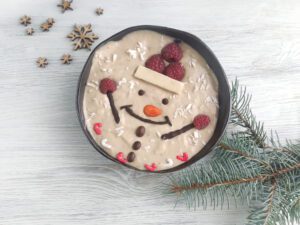 Bring a touch of holiday magic to your breakfast or snack with this Cheerful Snowman Peanut Butter Banana Smoothie! This