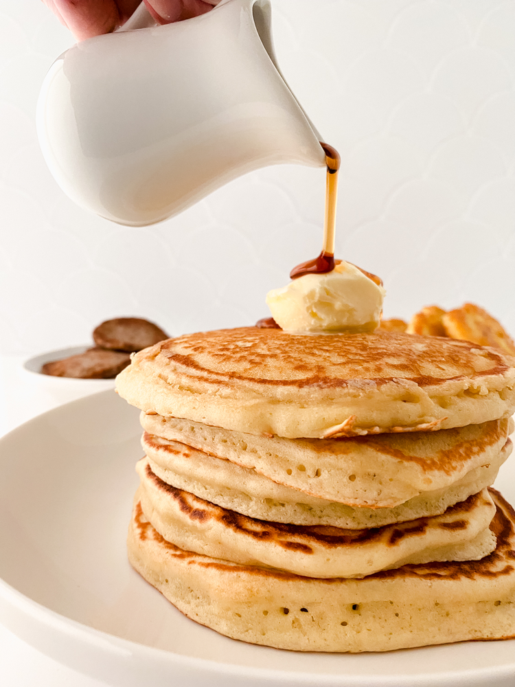 Left over pancakes can be frozen, separate each with parchment and place inside of a ziplock page for easy access.