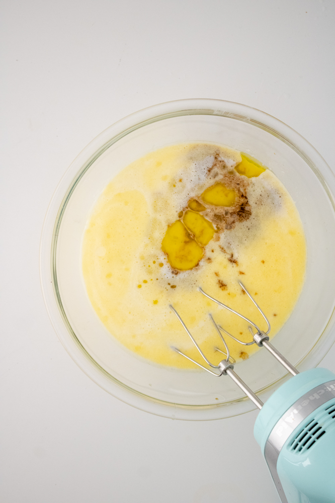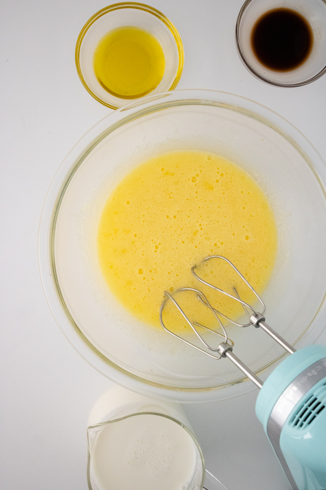 Add in the vanilla, oil and milk, mix until combined.