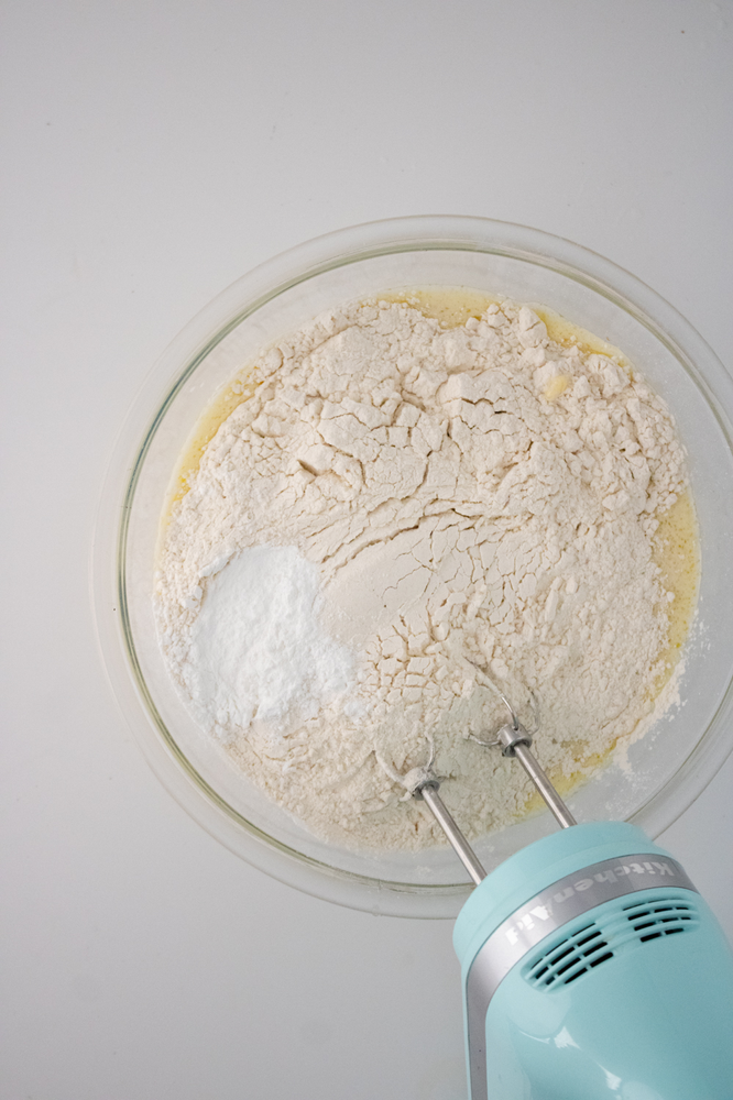 Add in the flour, baking powder and salt.