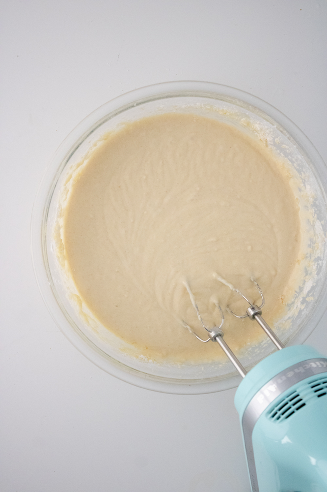 Blend together until batter forms, it will be thick but should not be lumpy.