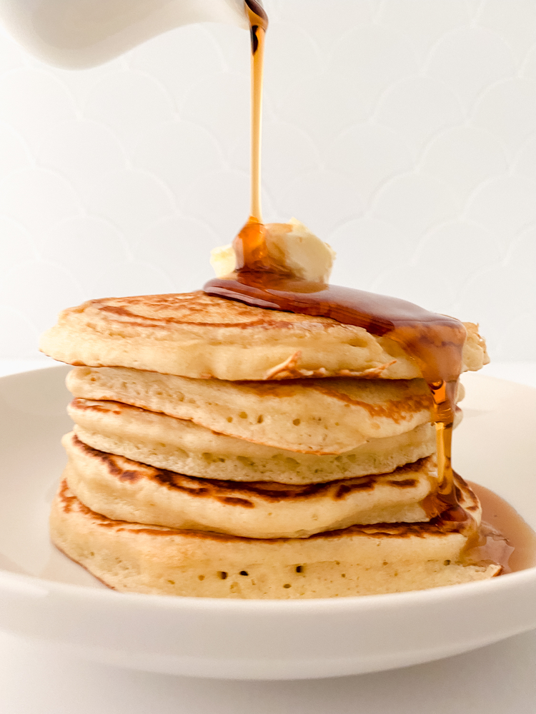 Leftover pancakes can be frozen, separate each with parchment and place inside of a ziplock page for easy access.