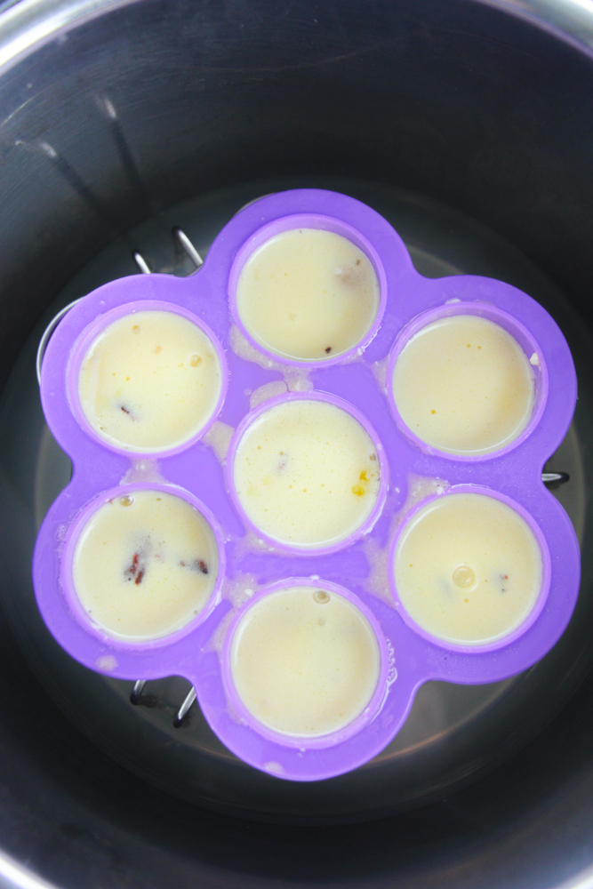 Carefully place the egg-filled tray on top of the Instant Pot trivet.
