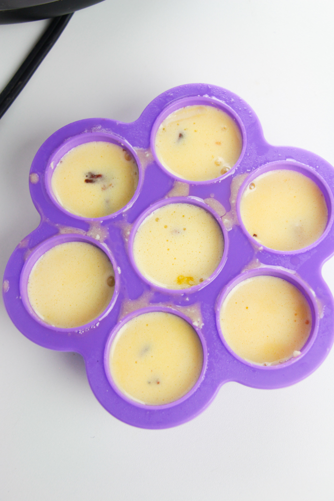 Pour egg mixture and fill each mold almost all the way full