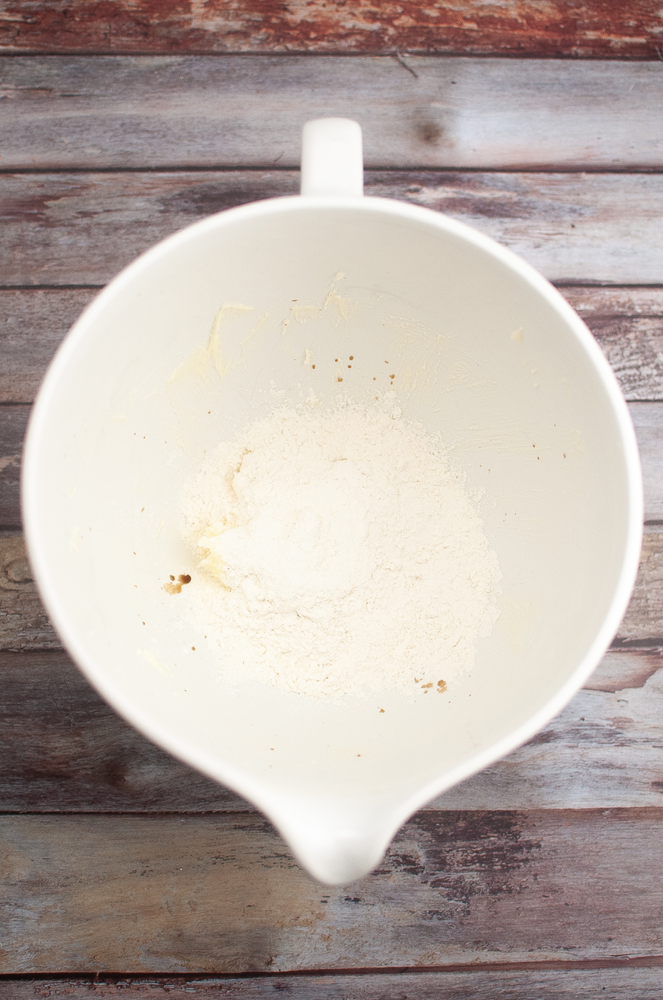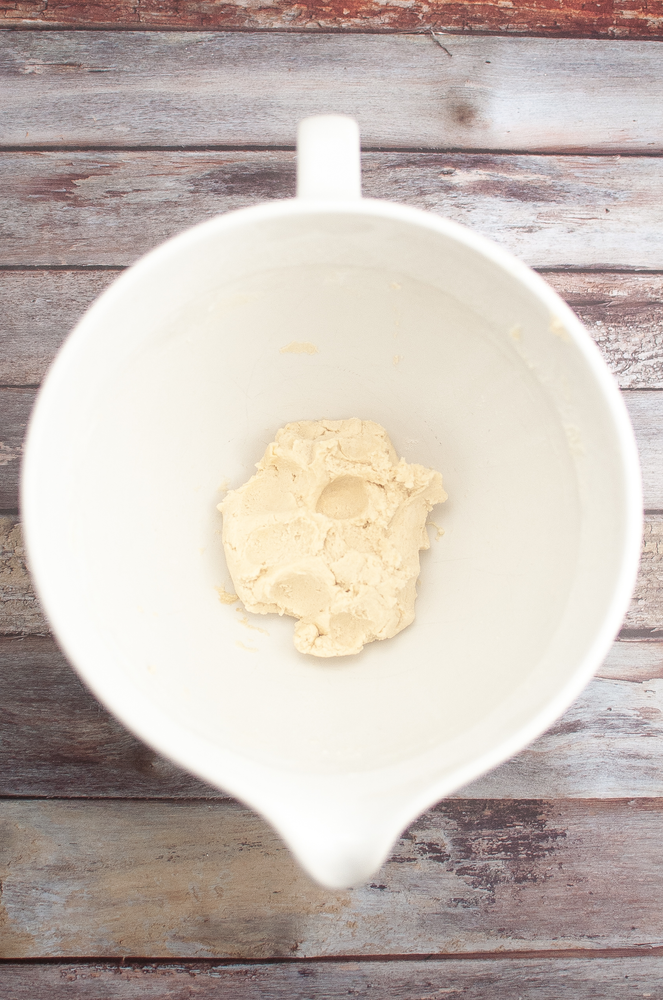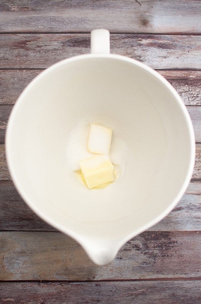 First we start by making the shortbread recipe. Using a stand mixer or a hand mixer, cream the butter and sugar together until smooth.