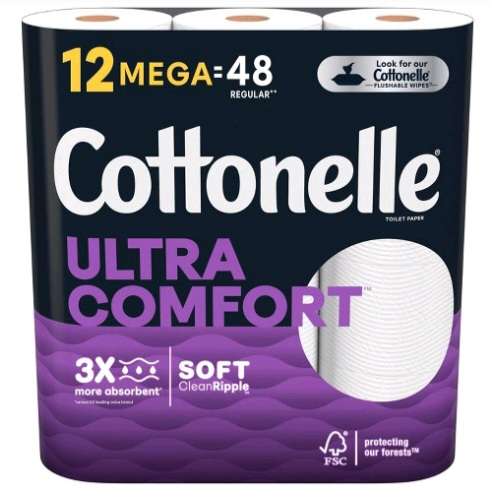 Pay – $10.39 for 12 Mega Rolls of Cottonelle Ultra Comfort Toilet Paper or ONLY $.86 per roll!