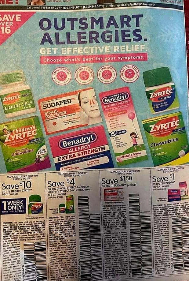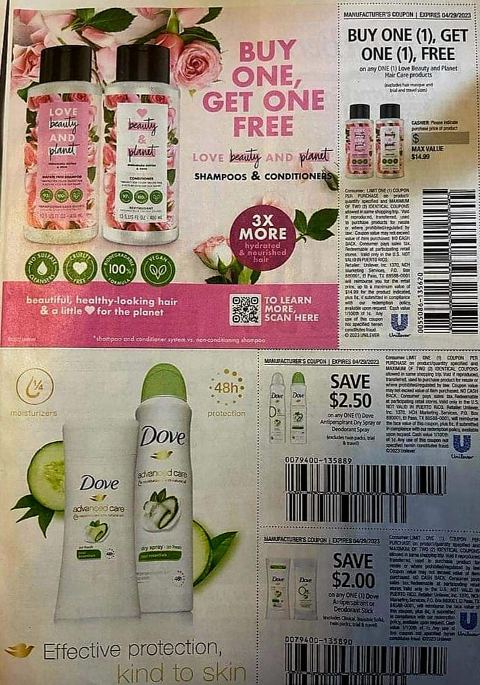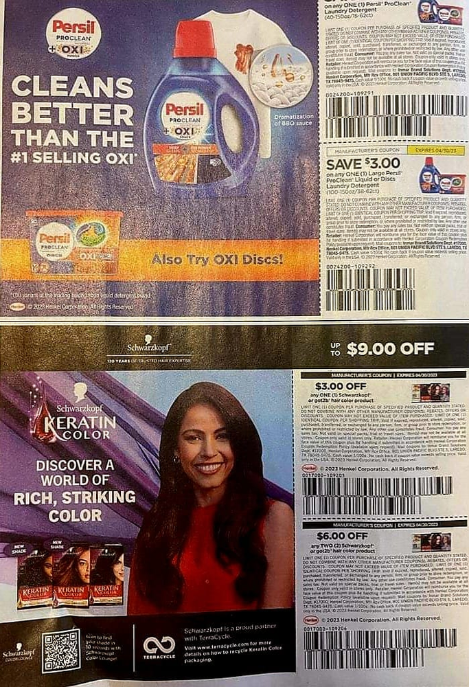 On 04/16/2023, you can expect two inserts in your Sunday papers. Remember that this list is a preview of what could be, each region can get differing coupons and different values. If you are looking for information on ordering coupons please contact Kristi Phillips our coupon supplier here by sending her a private message.