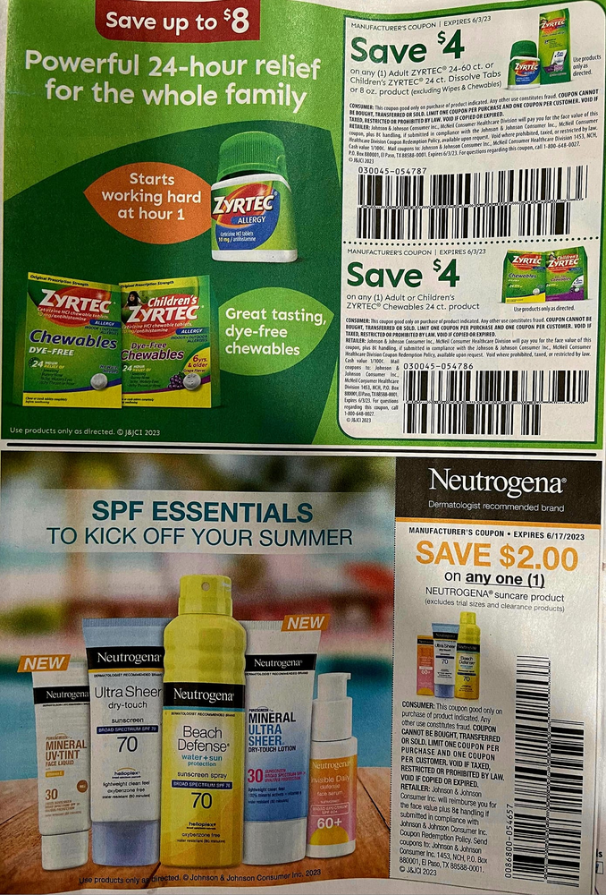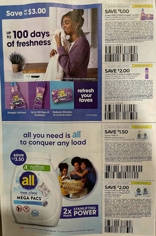 On 05/21/2023, you can expect two inserts in your Sunday papers. Remember that this list is a preview of what could be, each region can get differing coupons and different values. If you are looking for information on ordering coupons please contact Kristi Phillips our coupon supplier here by sending her a private message.