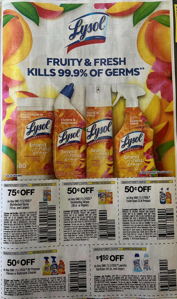 On 04/02/2023, you can expect two inserts in your Sunday papers. Remember that this list is a preview of what could be, each region can get differing coupons and different values. If you are looking for information on ordering coupons please contact Kristi Phillips our coupon supplier here by sending her a private message.