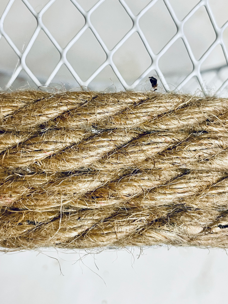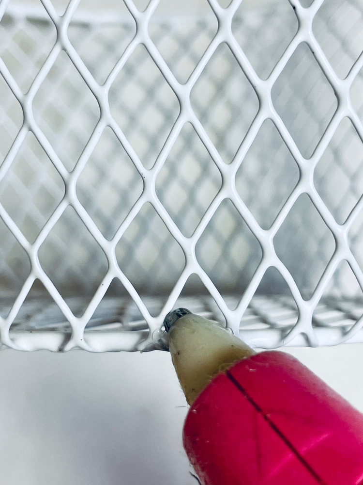 Start by adding a line of glue around the bottom edge of the wire basket. Add the nautical rope on top and repeat this until you have used the entire nautical rope. Mine went around 4 times. Make sure to add the glue were the wire sections meet to help adhere the nautical rope better.