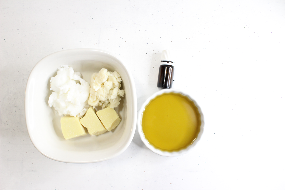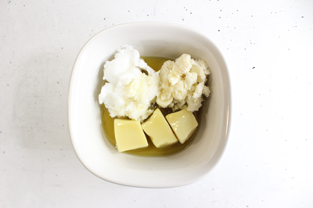 3. Melt the butters and oils in a double boiler, or slowly in the microwave, stirring every 30 seconds.