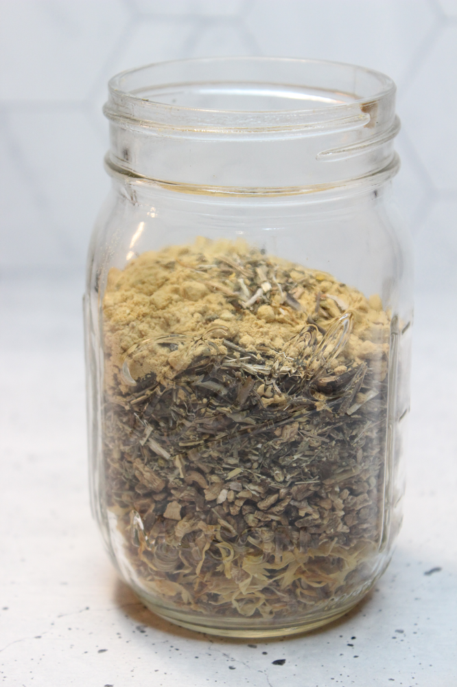 1. Combine all the herbs into a mason jar.