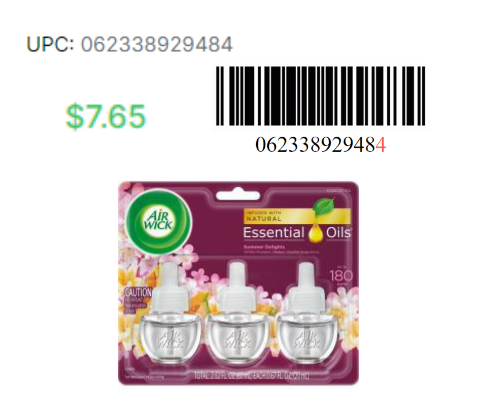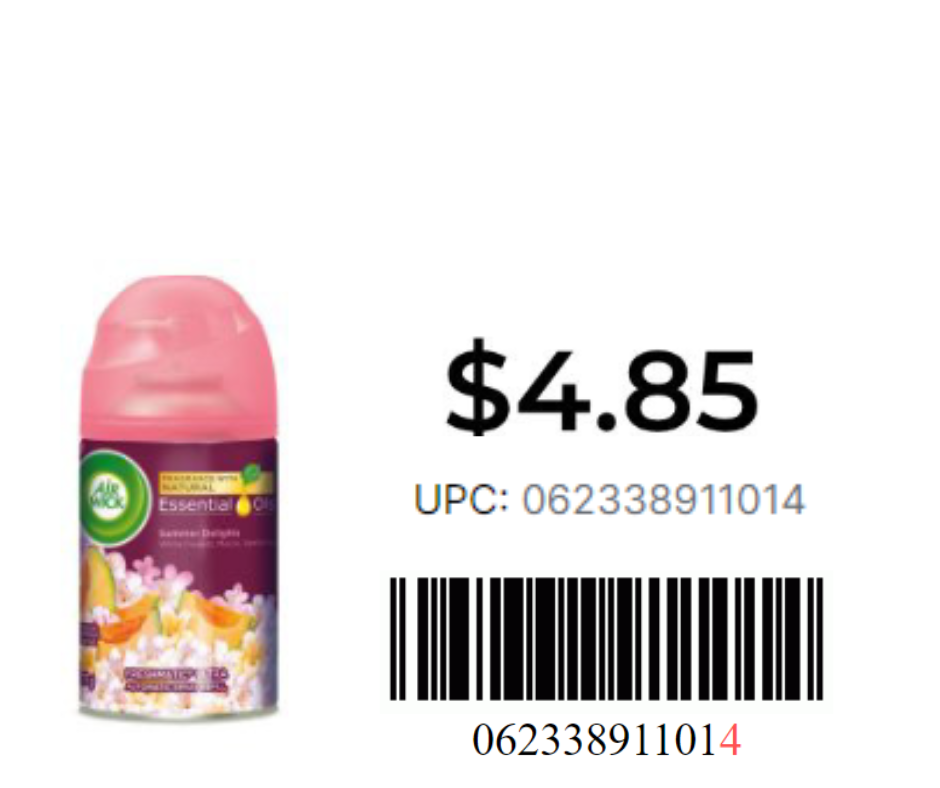 AirWick Oil Refill Summer Delight 3ct-0.67oz 0623-3892-9484 AirWick Oil Refill Turq Oasis 3ct-0.67oz 0623-3895-5513 AirWick Oil Refill Van/Pink 5ct-0.67oz 0623-3800-6161 AirWick Twin Oil Paradise Retrt 1.34oz 0623-3891-1106