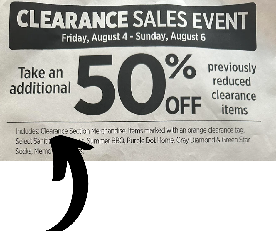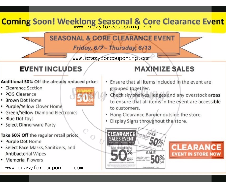 Seasonal Clearance; it is just what it sounds like, seasonal items. This includes sections such as garden, summer, etc. During these seasonal clearance events these items will be an extra 50% off. This also includes the shaped tag items such as the brown dot, purple dot etc.