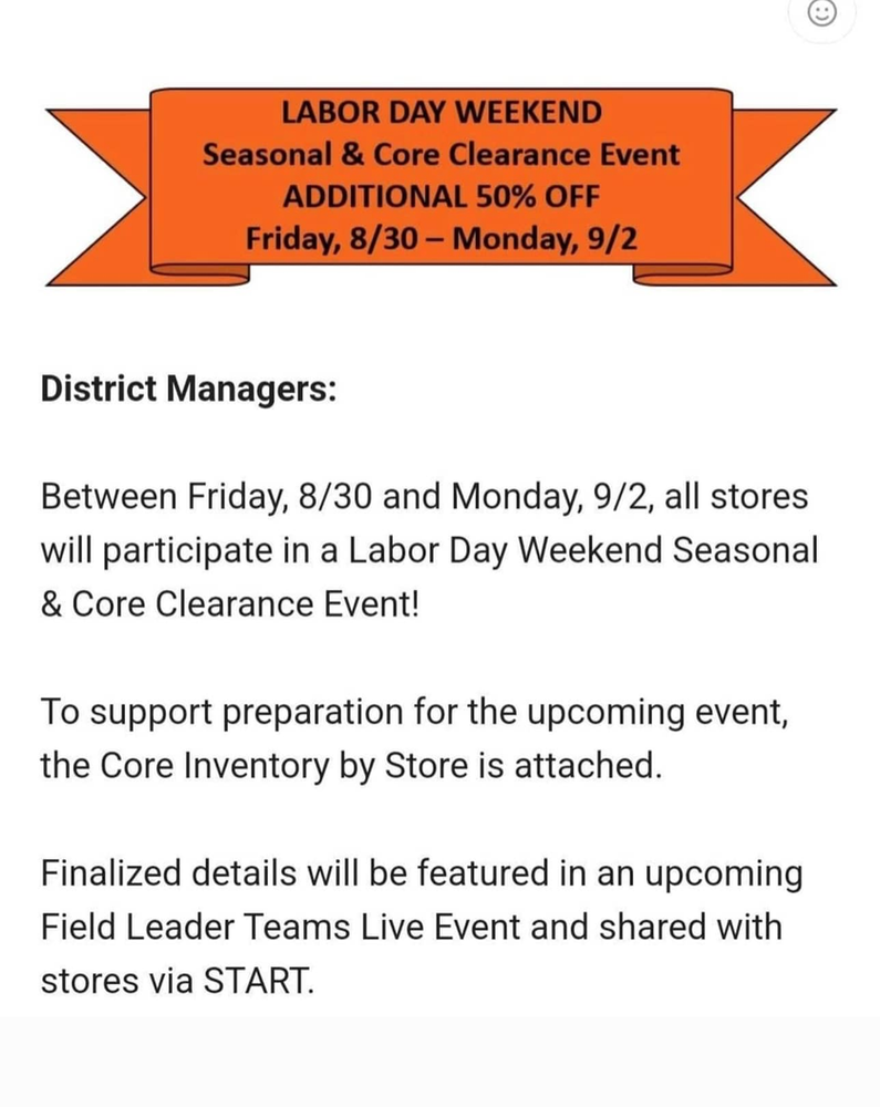 Seasonal Clearance; it is just what it sounds like, seasonal items. This includes sections such as garden, summer, etc. During these seasonal clearance events these items will be an extra 50% off.