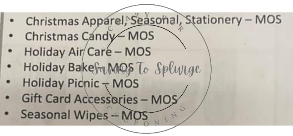 . REMEMBER NOTHING IS CERTAIN ON THIS LIST UNTIL WE GET IN STORES TO VERIFY! These items will not ring up a penny until TUESDAY.