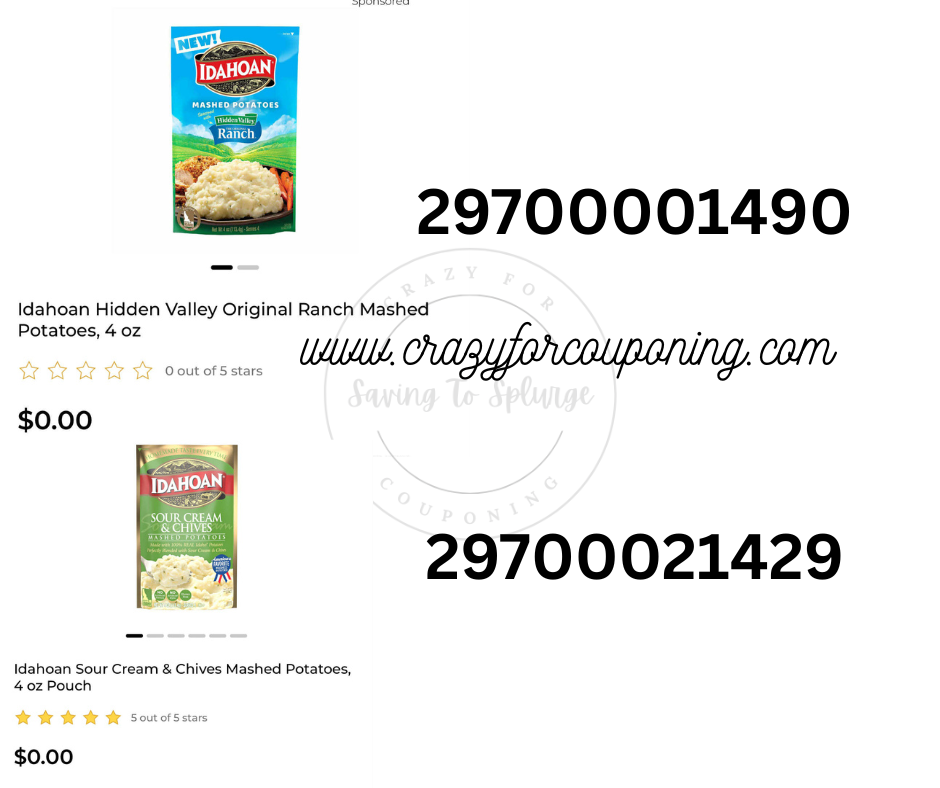 - Idahoan Sour Cream & Chives Mashed Potato – 29700021429