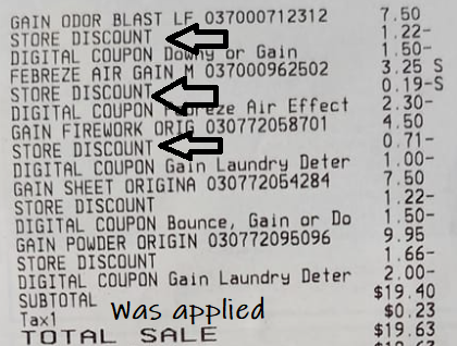 This coupon cannot be combined with other dollar off Dollar General "basket" coupons. A basket coupon is a dollar off coupon on the basket of items. This includes the $5.01 off P&G, your birthday coupon, the $2.00 off $10.00 etc. The $5.00 off $20.00 & $30.00 Gain coupon is a threshold coupon. It is considered a threshold coupon because it is a brand item, (GAIN) and you have to reach a threshold of the Gain to get the discount. THIS COUPON CAN be in conjunction with the basket coupon.