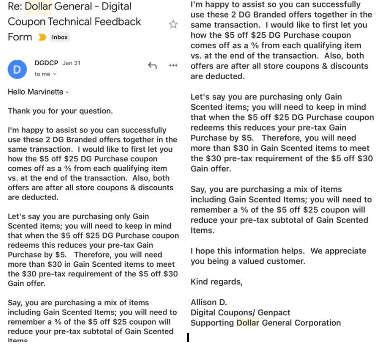 Recently we have seen a change in the way the new register systems are stacking the Dollar General Saturday digital coupons and the Gain Coupon. We are seeing more and more new systems stack these coupons, making Saturday's a very successful shopping day at Dollar General.