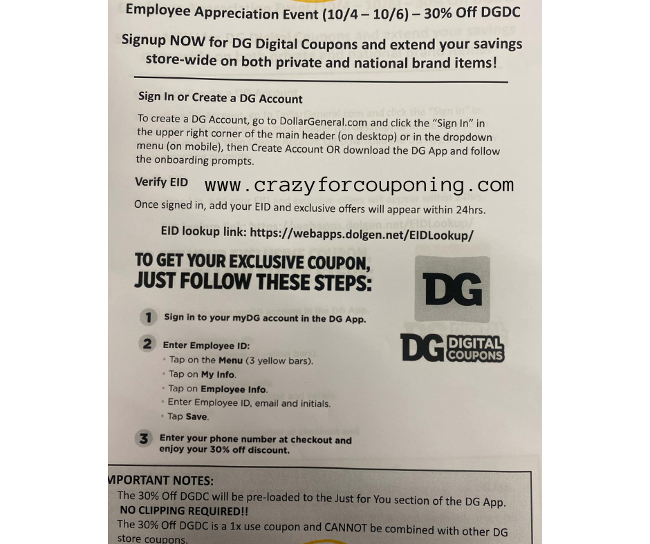 Exciting News for Dollar General Employees: Exclusive 30% Off Discount Just for You! (10/04-10/06)